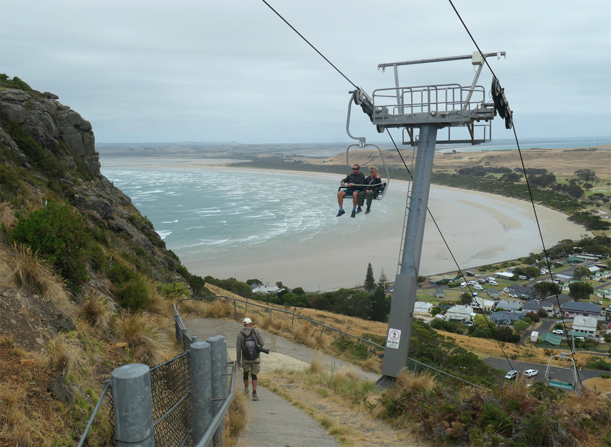 Ein tolles System. Auf der zehn Kilometer langen Strecke gibt es vier Möglichkeiten, um auszusteigen. Separate Wanderwege verbinden die Stationen. Man kann auf und abspringen nach eigenem Belieben. Alle fünf bis zehn Minuten kommt ein Bus.