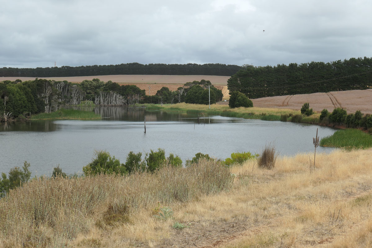 Die Wanderung um den See ist Pflichtprogramm. Gehört dazu. Klar. Der Weg ist schmal und führt durch wechselnden Bewuchs. Mal offene Landschaft, mal Wald, mal Nadelholz, dann wieder Eukalyptus. Schön. Sehr schön.