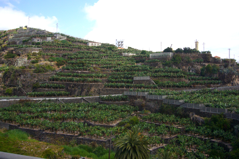 Eine schroffe Schlucht folgt der nächsten. Selten hat ein Hang weniger Gefälle als 45 Grad. Selbst die weitläufigen Bananen-Plantagen sind terrassenförmig in die abschüssigen Hänge angelegt.