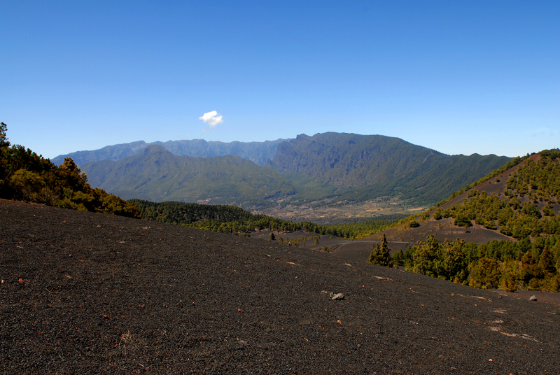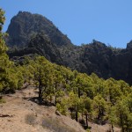 Die Caldera de Taburiente hat einen Durchmesser von 9 km und einen Umfang von 28 km. Dieser riesige Kessel ist 1.500 Meter tief und im Grunde nur an einer Stelle unterbrochen. Durch diese Schlucht, dem Barranco de las Angustias, fließt das Wasser aus dem Krater ins Meer.