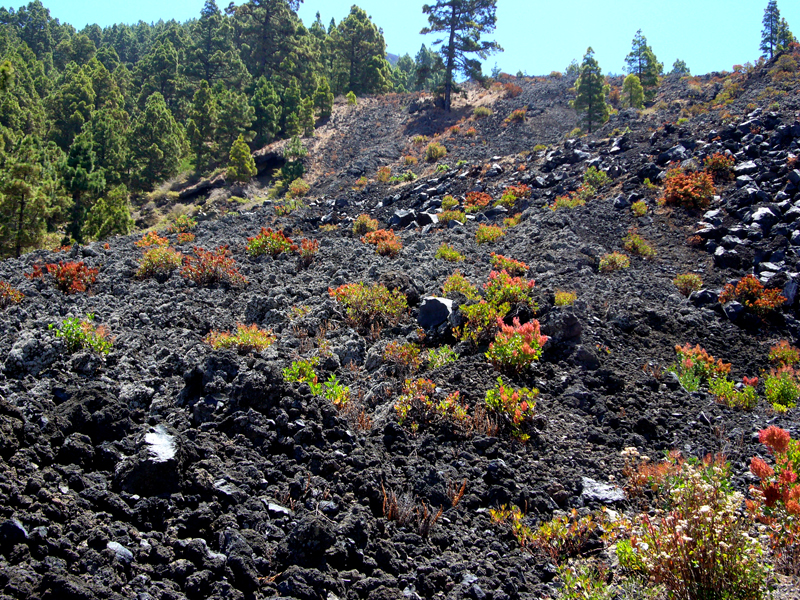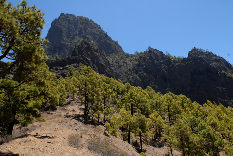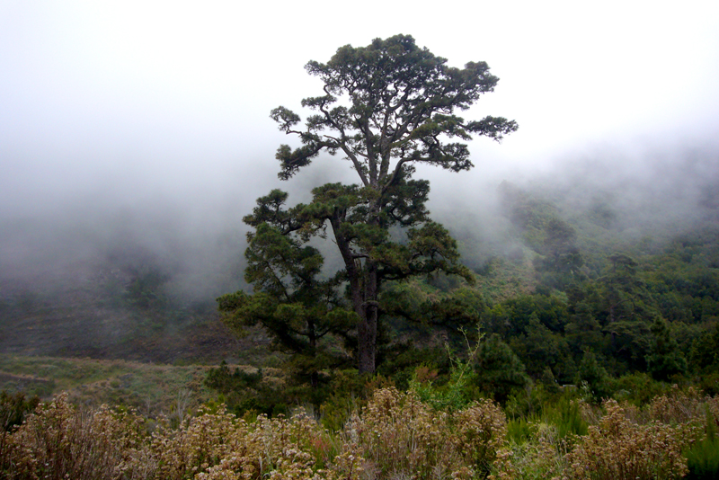 Im Gegensatz zu Teneriffa, gibt es hier viele, alte, knorrige Kiefern. Mal als Einzelkämpfer taper an den Hang gekrallt. Mal als dichter Pinienwald seinen Duft verströmend. Mit ihren, bis zu 30 cm langen nadeln „kämmen“ sie die Feuchtigkeit aus den vorbeiziehenden Wolken.