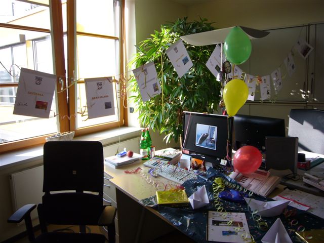 Herzlichen Dank an Euch. Anbei noch ein Bild mit meinem, liebevoll von den Buchhaltungskollegen geschmückten! Arbeitsplatz.