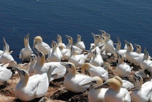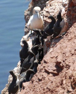 Liebe Ornithologen , leider kann ich nicht wirklich etwas wissenschaftlich verwertbares beitragen, außer, dass es am Lummenfelsen wirklich schoen ist (wenn auch geruchlich extrem intensiv). Die Toelpel haben bei dem leichten Wind nicht wirklich ihre wahren Flugkünste gezeigt, aber sind sind einfach schoen anzusehen. Wir hatten schon einmal das Glück auf Helgoland zu sein, als der Wind eher Sturmstärke hatte und dann zeigen die Toelpel wirklich was sie drauf haben. Selten kann man so elegante Flieger in Natur sehen. Ich finde die Insel immer wieder schoen, auch wenn Bine meine Begeisterung nicht immer teilt. Immerhin konnte ich sie ueberzeugen, einen Tag Länger zu bleiben, bevor wir nach Holland weiterfahren.