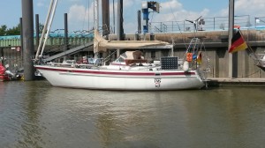 Heute ging es nun endlich weiter, 30 sm (55 km) nach Cuxhaven. Bei strahlendem Sonnenschein, aber wieder kein Wind. Wir sind jetzt fast 60 sm unterwegs und hatten noch nicht einmal die Segel hoch – so wird das nix mit Weltumsegelung… Aber am Montag kommt endlich der Absprung in die Nordsee (=Mordsee). Ich scharre auch schon mit den Hufen… In Cuxhaven haben wir große Wäsche gemacht. Seit zwei Wochen hatten wir entweder wegen Wetter oder mangels Maschine keine Möglichkeit. Jetzt zieren in diesem vereinsgeprägten, ehrwürdigen Hafen T-Shirts, Schlüpfer (männlich und weiblich), BH’s (nur weiblich) unser Deck.8-O