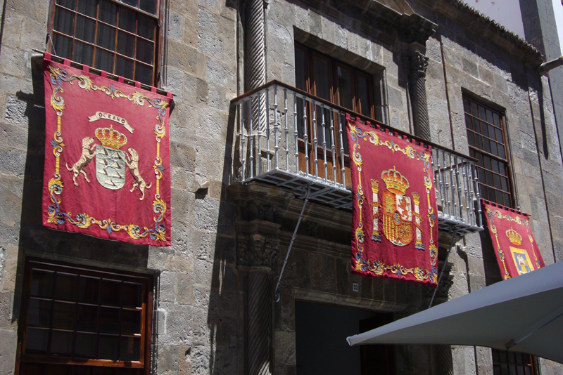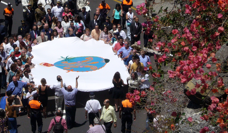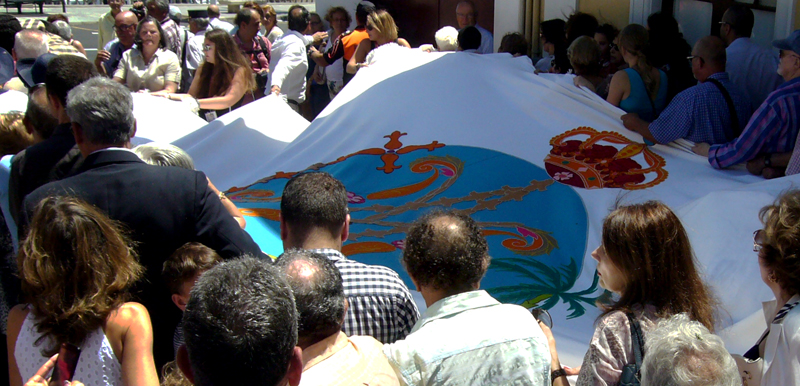 Das Banner der Virgen de las Nieves wird nur alle fünf Jahre aus dem Schrank geholt. Für die Zeit der Bajada weht es hoch über der Stadt auf dem Castillo.