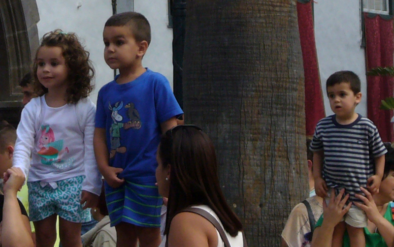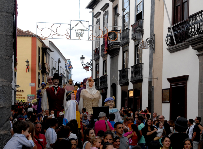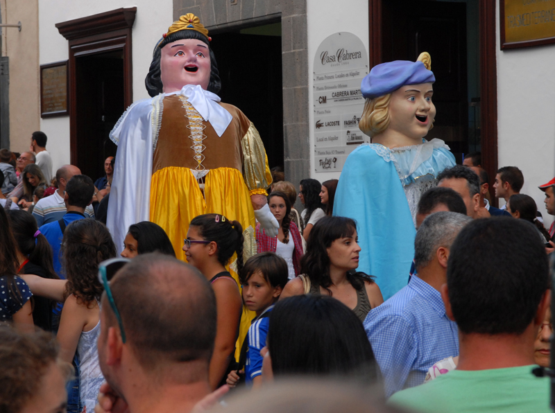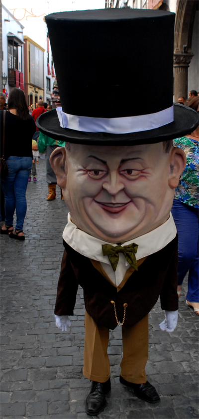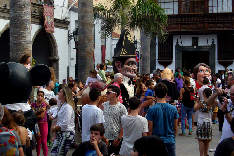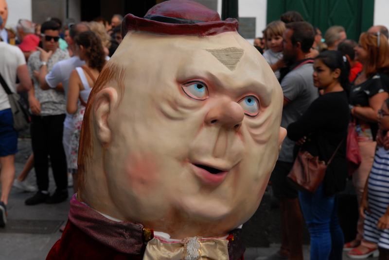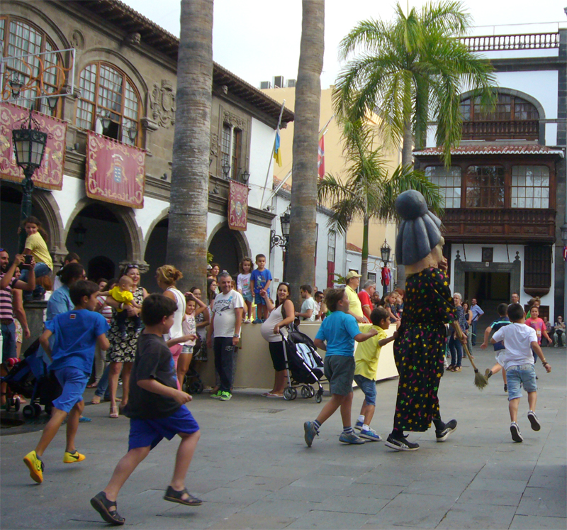 Hinter den Hexen schreiten gemächlicher die restlichen Großköpfe her. Dicht gefolgt von den Riesen. Am Plaza de Espana beim Rathaus versammeln sich alle Figuren und sie führen im Rahmen ihrer Möglichkeiten ein kleines Tänzchen auf.
