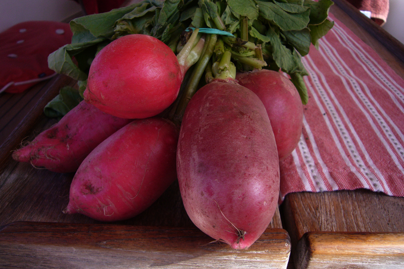 Bei meiner zweiten Runde kaufe ich, damit ich überhaupt etwas habe, mutierte Riesen-Radieschen (Bio?). Das Angebot wird nicht größer… noch 85 Minuten.