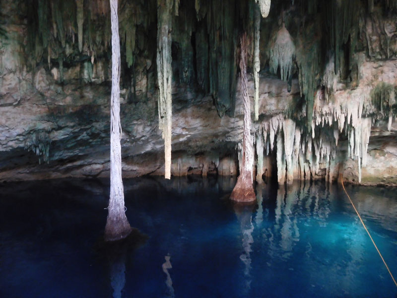 Die Cenotes in Yucantan sind zwischen 15 bis 30 Meter tief, vereinzelt auch bis zu einhundert Metern. Sie verbinden sich zu einem unterirdischen Höhlensystem, dem wahrscheinlich größten System der Welt. Über Tausend Kilometer sind bereits erforscht. Tausende warten noch auf Erkundung.