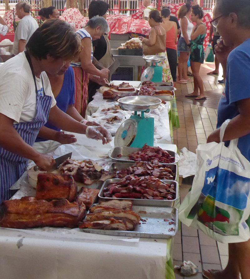 Unter der Woche ist der Markt in Papeete ganz nett, aber erst am Sonntag tobt dort das Bärchen. Die Händler und Bauern aus den umliegenden Dörfern bieten ihre Produkte an.