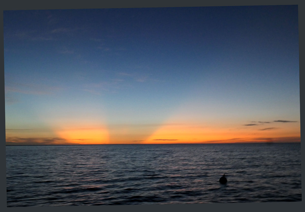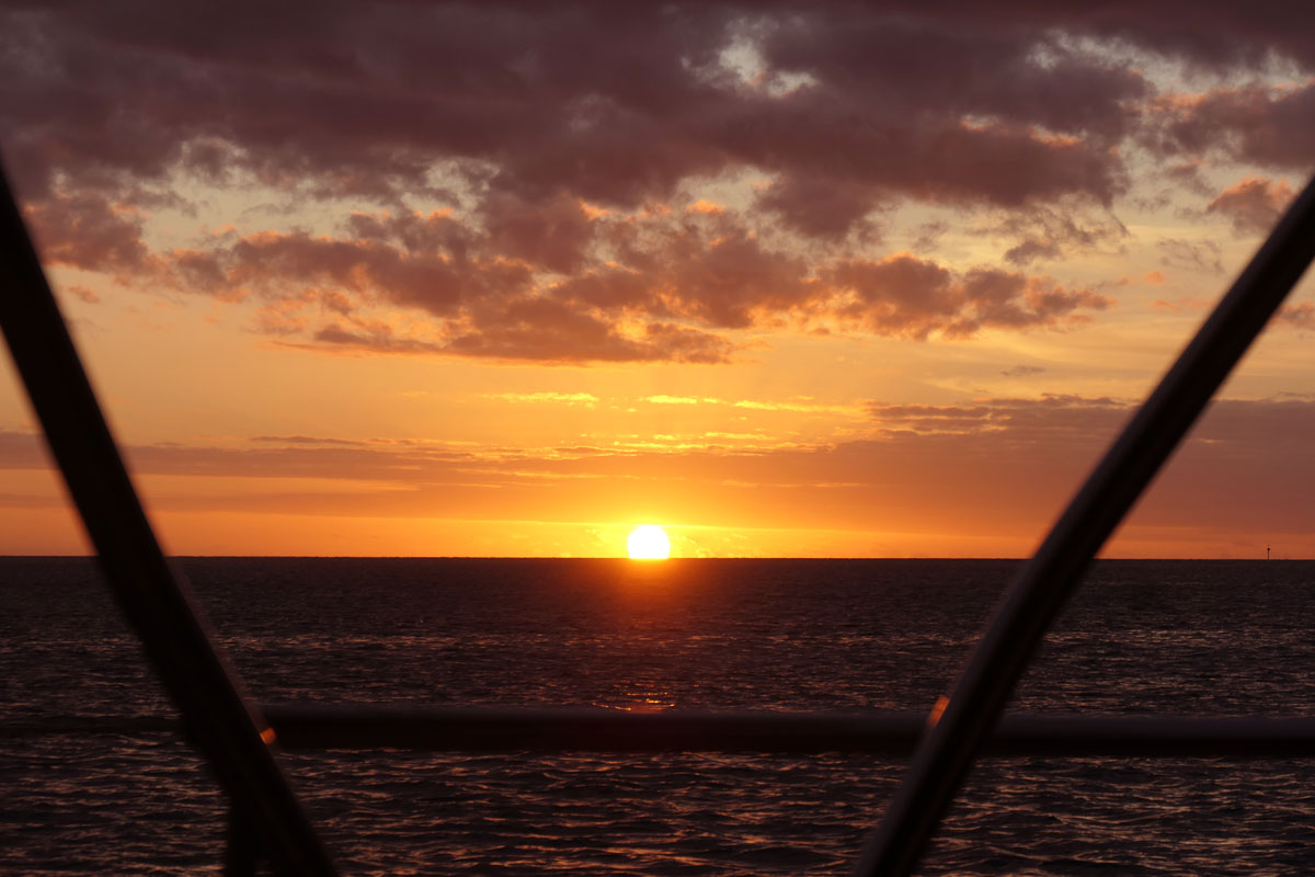 Jeden Abend Farbenzauber. Das erste Mal sehen wir einen ‚green Flash‘ beim Sonnenuntergang. Nicht bei diesem. ;-)
