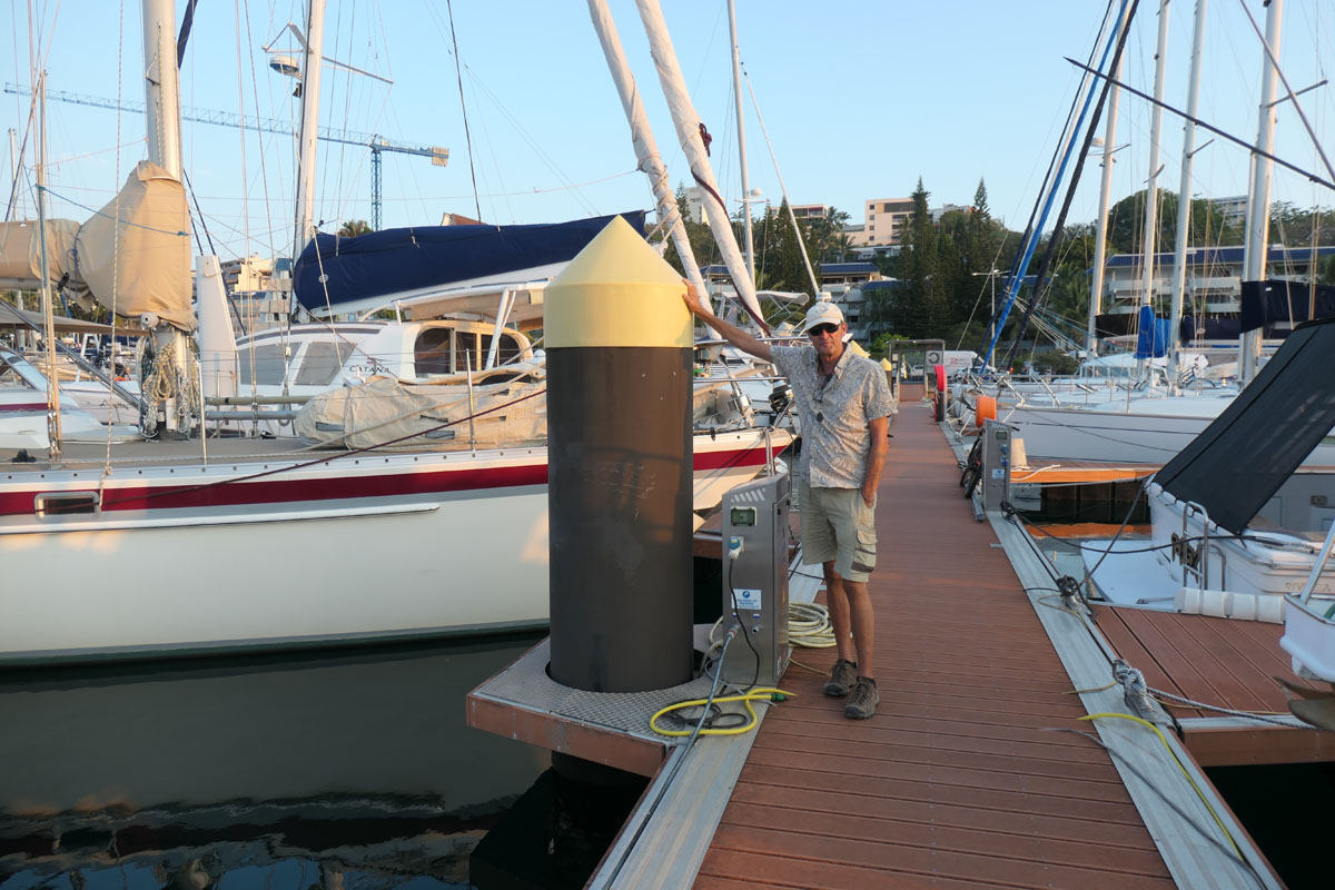 Die Poller in der Marina haben bei normalem Hochwasser grade noch zwei Meter Luft. Zu viel ist das nicht. ![]()