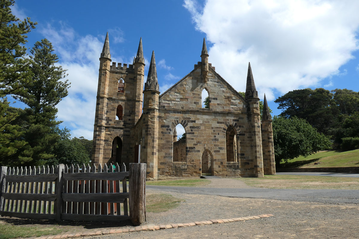 Zu Fuß gehen wir am nächsten Morgen zwei Kilometer zum Gefängnis. Port Arthur war eines der berüchtigtsten Zuchthäuser des britischen Empires. Heute wirkt es malerisch, verbirgt aber eine dunkle Geschichte psychologischer Experimente. Ein abschreckendes Beispiel, zu welchen Scheußlichkeiten Menschen fähig sind.