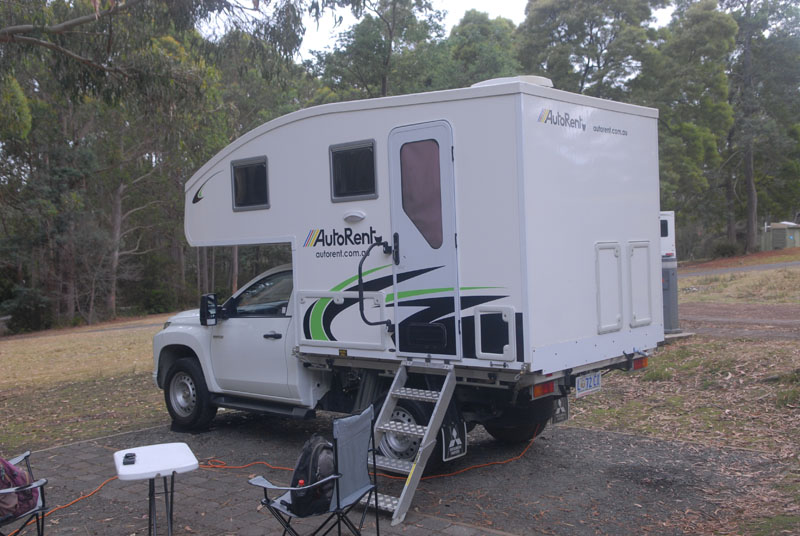 Wegen schlechten Wetters im Westen disponieren wir um und düsen nach Osten. Wir wählen Port Arthur, nur 76 Kilometer entfernt. Auf dem Campingplatz kurz ein Schreck: ausgebucht! Da unser Wagen aber so klein ist, bekommen wir noch ein Plätzchen, wo die Dicken schlecht einparken können. Wir buchen zwei Nächte.