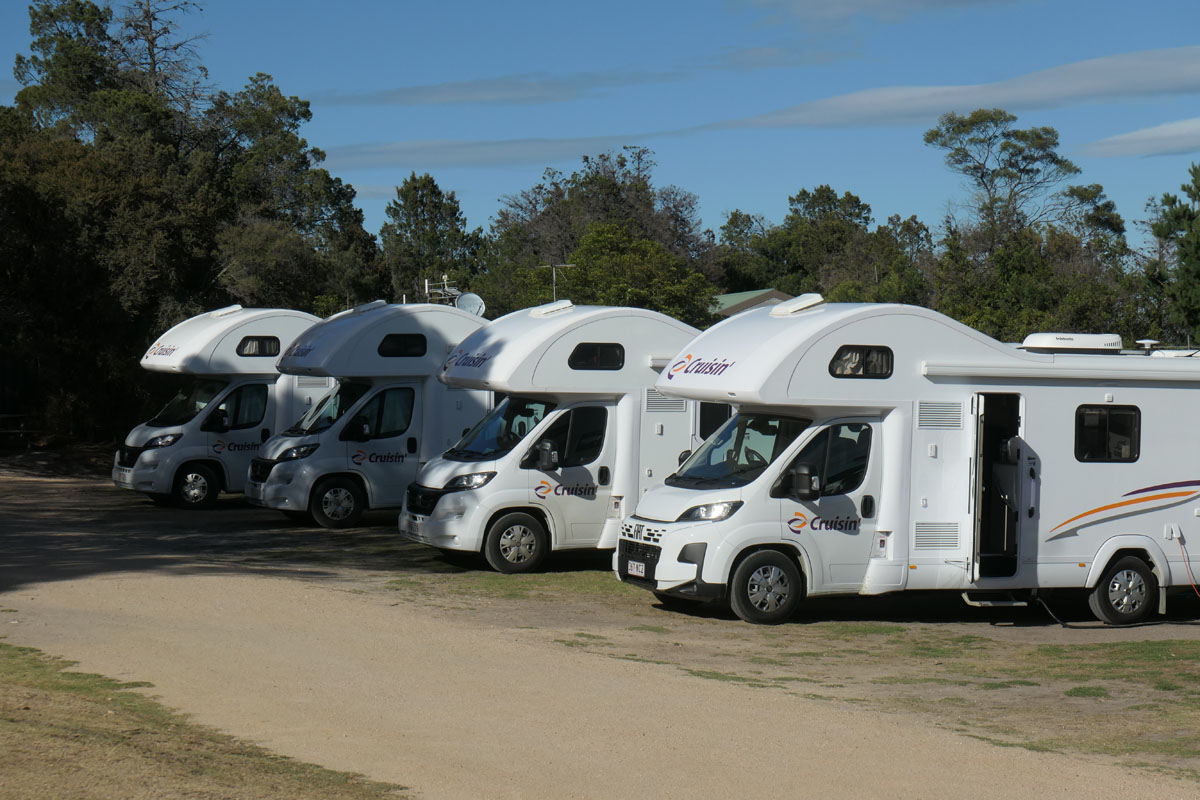 Das ist kein Hof der Wohnwagen verkauft. Das ist der Campingplatz mit Wineglass Bay Besuchern. Es ist proppe voll …