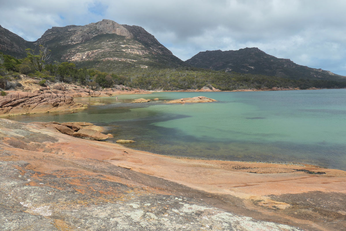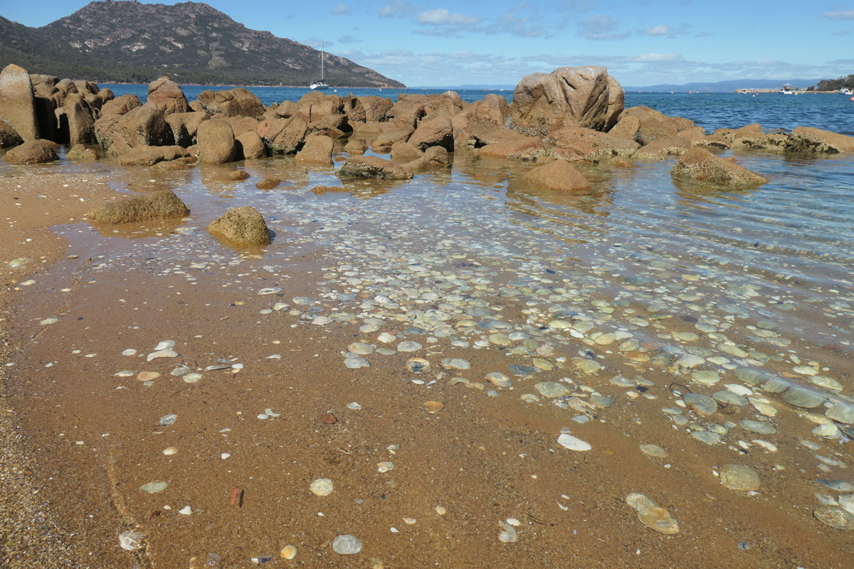 Die Wineglass Bay liegt im Freycinet Nationalpark auf einer verwinkelten Halbinsel. Überall tauchen überraschend neue Buchten auf. Besonders die Honeymoon Bay mit ihren rosa Granitfelsen gefällt uns. Nur noch als Attraktion dritten Grades gehandelt, ist es hier angenehm leer.