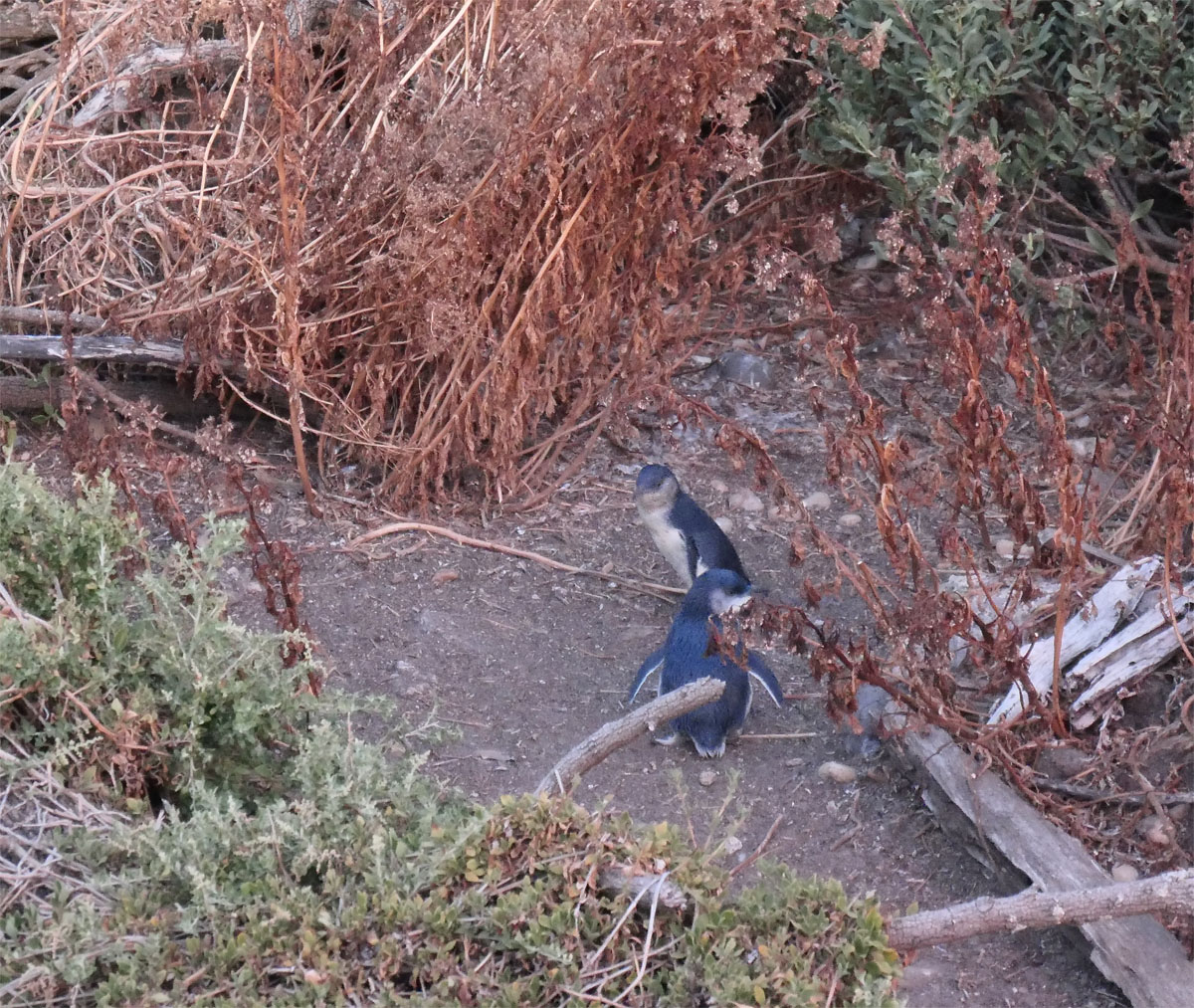 Am Lillico Beach wohnt eine große Kolonie der kleinen Pinguine. Eine Plattform ist direkt über ihre künstlichen Höhlen gebaut. Bereits tagsüber strecken sich einzelne Schnäbel aus Holzkisten. Das sind erwachsene Pinguine in der Mauser, die während der Mauser-Zeit für zwei Wochen nicht ‚wasserdicht‘ sind.