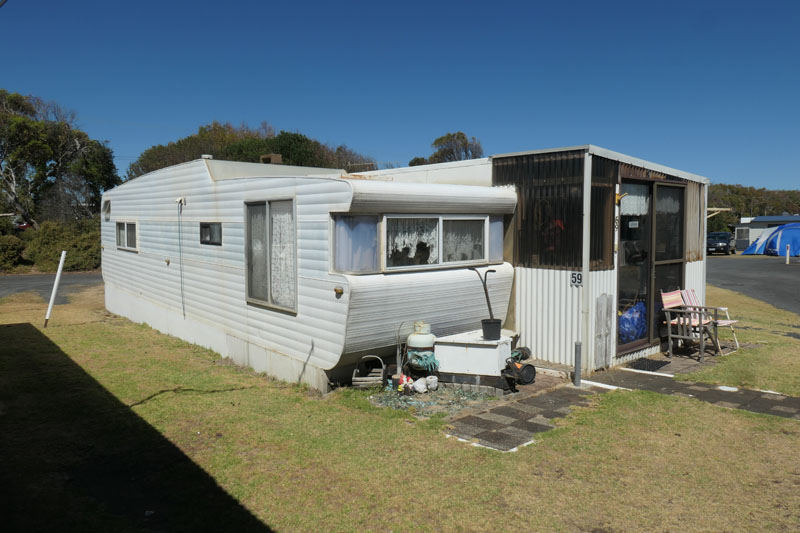 Wir landen dann in einer Wohnwagen-Siedlung. Die Wohnwagen sind schon lange nicht mehr mobil. Umbaut mit Bretterbuden, Schuppen und Zäunen. Eine Laubenpieper-Anlage ohne Gärten. Etwas schräg.  Auch die Bewohner. Camper wie uns gibt es nur eine Handvoll. Das hat den Vorteil, dass die sanitären Anlagen sehr sauber sind.