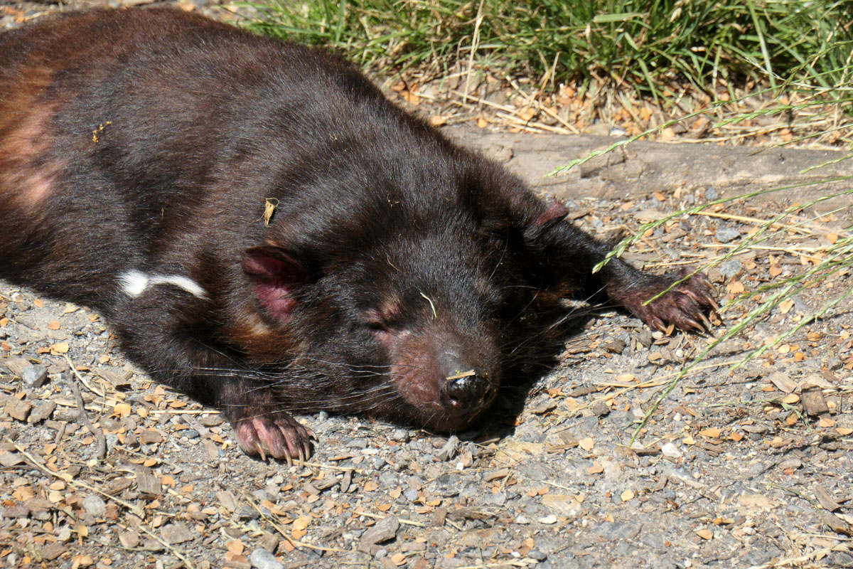 Im Park befindet sich eine Tierschutz-Einrichtung für den Tasmanischen Teufel. Die armen Tiere leiden unter einer ungewöhnlichen und aggressiven Krankheit: Der „Devil Facial Tumour Disease“.