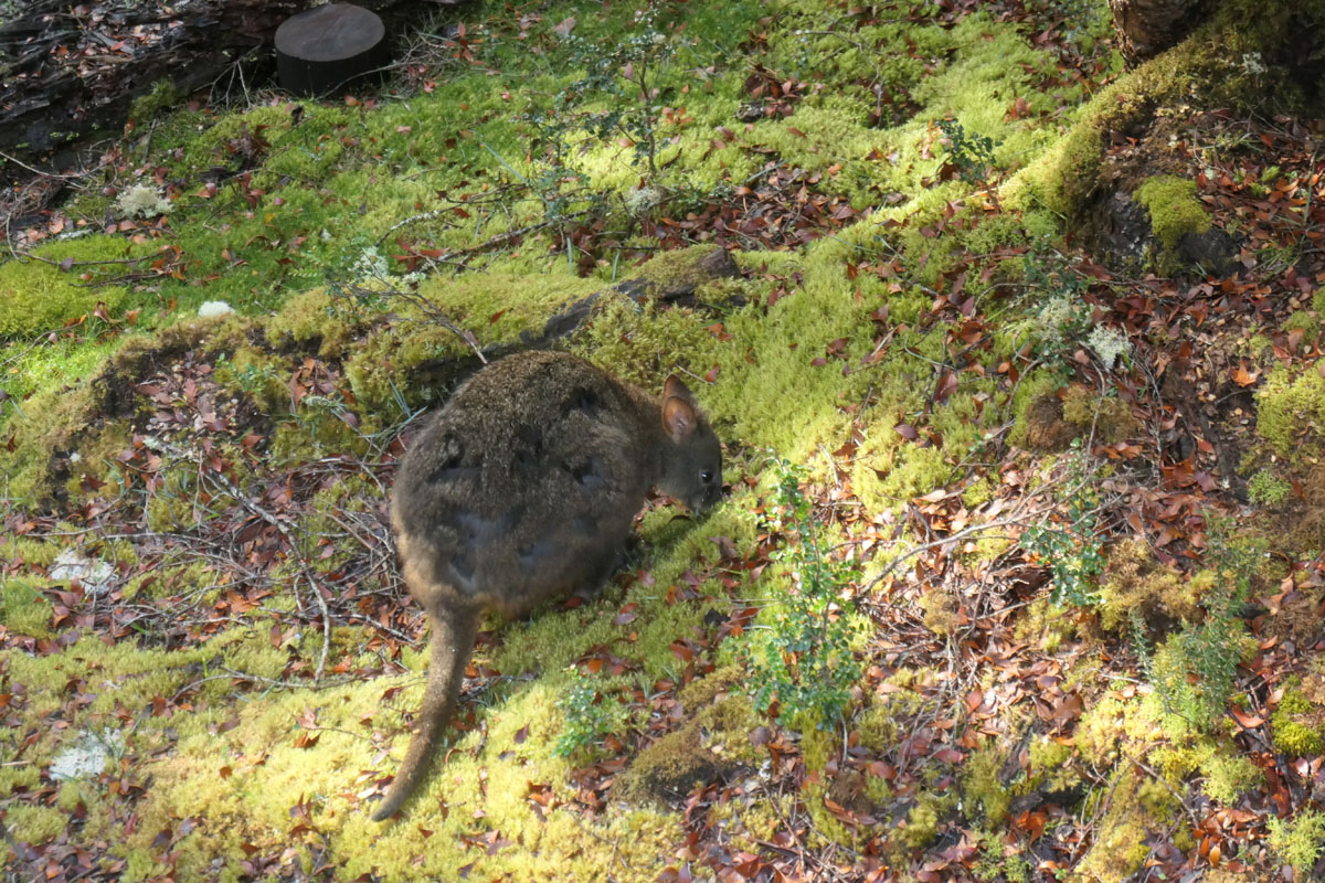 Endlich ein Pademelon, was nicht sofort abhaut. Diese kleinen Kängurus sind grade groß wie eine dicke Katze.