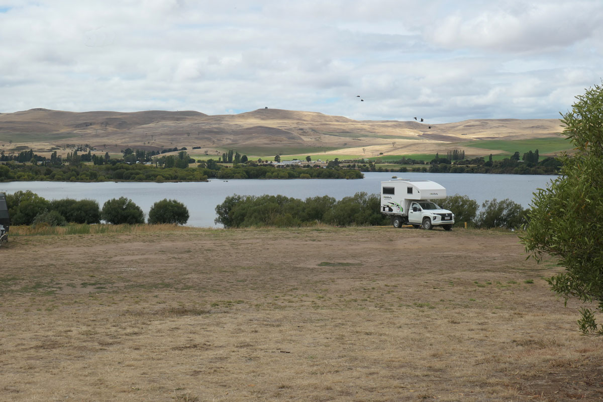 Wir fahren eine gute Stunde weiter und finden einen weiteren Stausee. Und einen weiteren kostenlosen Stellplatz. Auch dieser gehört zu „Hydro Tasmania“. Dieses ist der staatliche Energieversorger und einer der größten Land- und Wasserbesitzer Tasmaniens.