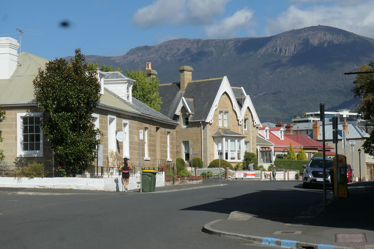Es geht gemütlich zu in Hobart, obwohl an unserem ersten Tag ein Kreuzfahrer an der Pier liegt. Die Passagiere werden von energischen Damen mit Warnweste so geleitet, dass sie nicht den Autoverkehr behindern. Wir werden kräftig angeschnauzt, weil wir uns nicht an die Cruiser-Regeln halten.