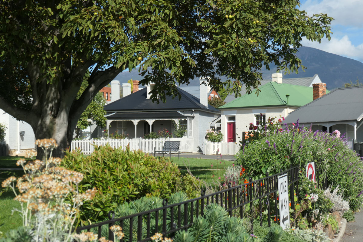 In Battery Point finden wir den Arthur Circus. Es ist einer der wenigen Orte weltweit, an dem die Häuser in einem perfekten Kreis um einen Dorfplatz gebaut wurden. Ursprünglich war es für pensionierte Offiziere gedacht, die sich nichts Großes leisten konnten. Eines der Häuser ist gerade mal sechs Meter breit. Heute kosten diese „Puppenhäuser“ bis zu eine Million Euro.