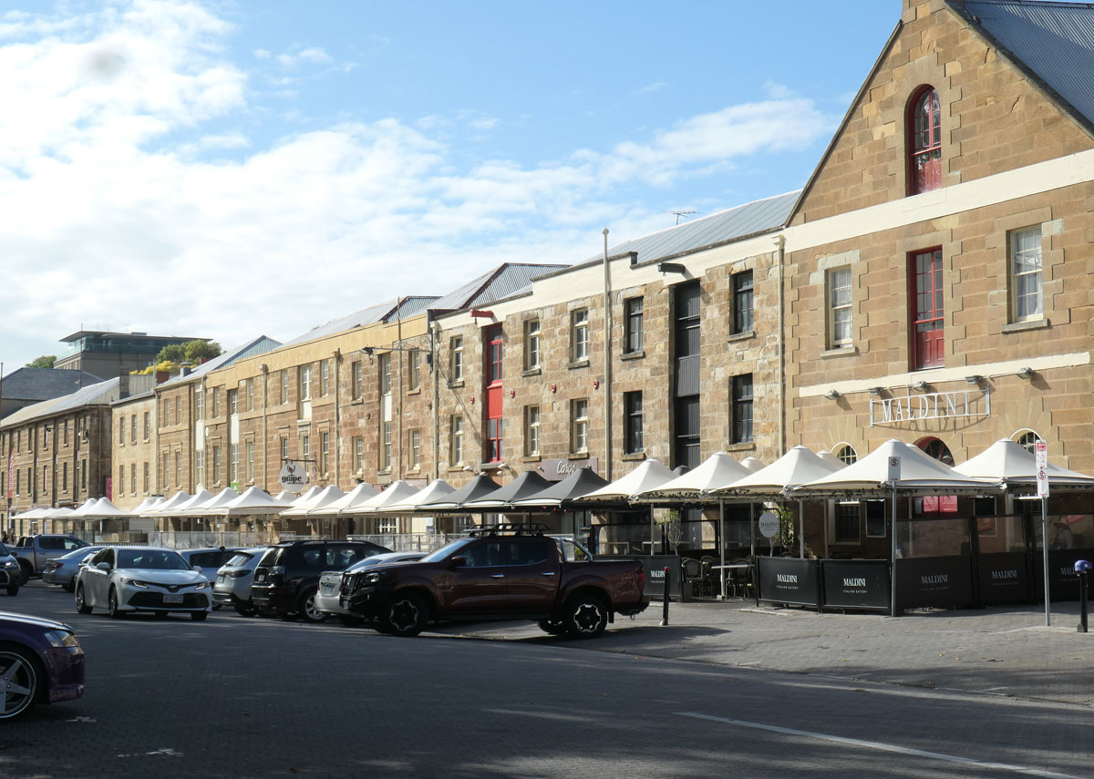 Hobart ist nach Sydney die zweitälteste Stadt Australiens. Die alten Sandsteinspeicher beherbergen heute schicke Bars und Galerien. Jeden Samstag findet dort ein prachtvoller Markt statt, den wir leider verpassen. Aber die Atmosphäre schwappt über.