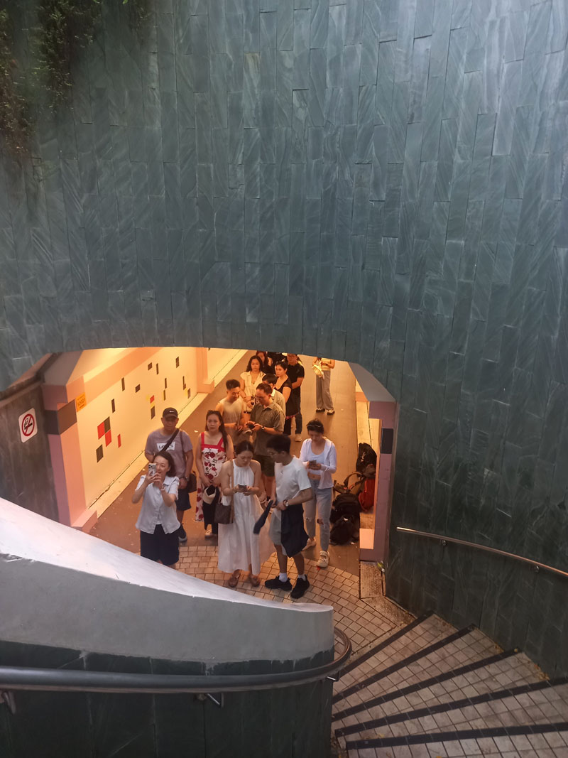 Erster Test: die Mass Rapit Transit (MRT) U-Bahn. Fazit: ein öffentliches Verkehrsmittel in Perfektion. Nur ein Tap mit der Kreditkarte beim Einsteigen. Erneutes Tappen beim Aussteigen. Die (günstigen) Tarife werden automatisch pro Tag berechnet. Kein endloses Studium des Aushangs der Tarife wie in Hamburg nötig.