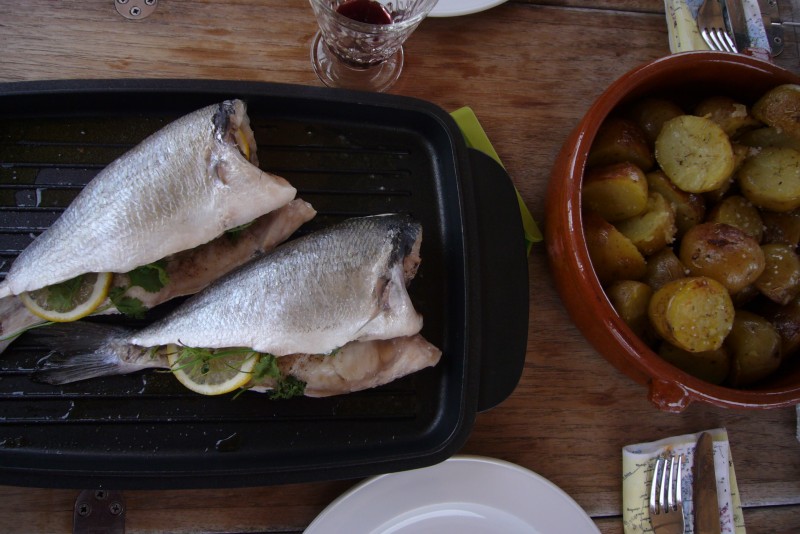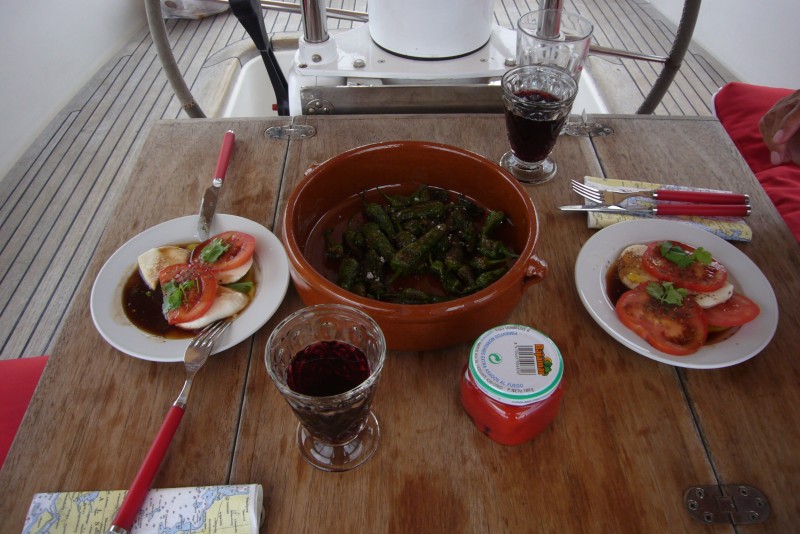 Vorgestern gab’s vorweg Pimentos und eine Art Caprése und als Hauptgang gegrillte Dorade.