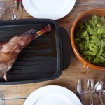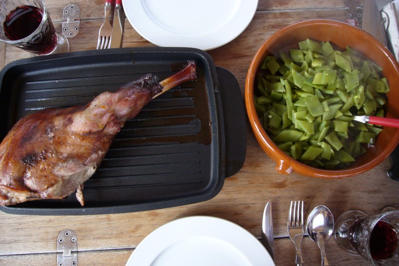 frische Lammkeule, noch recht klein, da ganz jung und zart…(köstlich – das ganze Schiff duftet danach). Dazu ein kühler Rosé oder Rotwein – je nach Gusto.