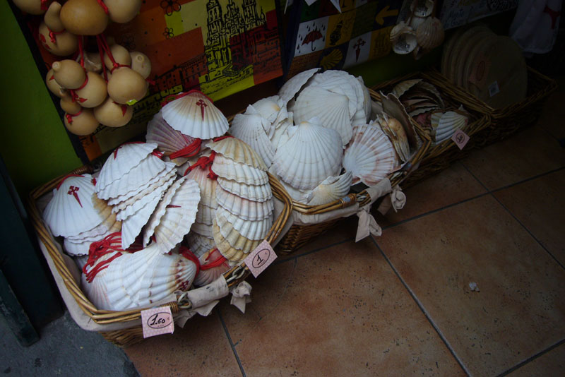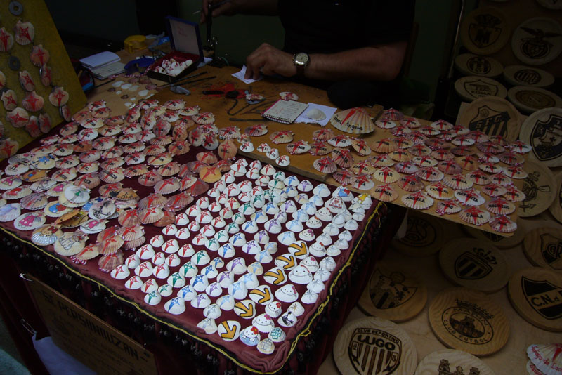 Das Gehäuse der Jakobs-Muschel ist allgegenwärtig, als Souvenir, als Erkennungszeichen des erfolgreichen Absolvierens des Jakobsweges oder einfach kulinarisch. Die Altstadt ist sehr gut erhalten, recht weitläufig und Weltkulturerbe. Uns gefällt es ausgezeichnet, so dass wir lange durch die Gassen flanieren. Am Ende fühlen sich unsere Füße so an als wären wir den ganzen Camino de Compostela an einem Tag gelaufen..