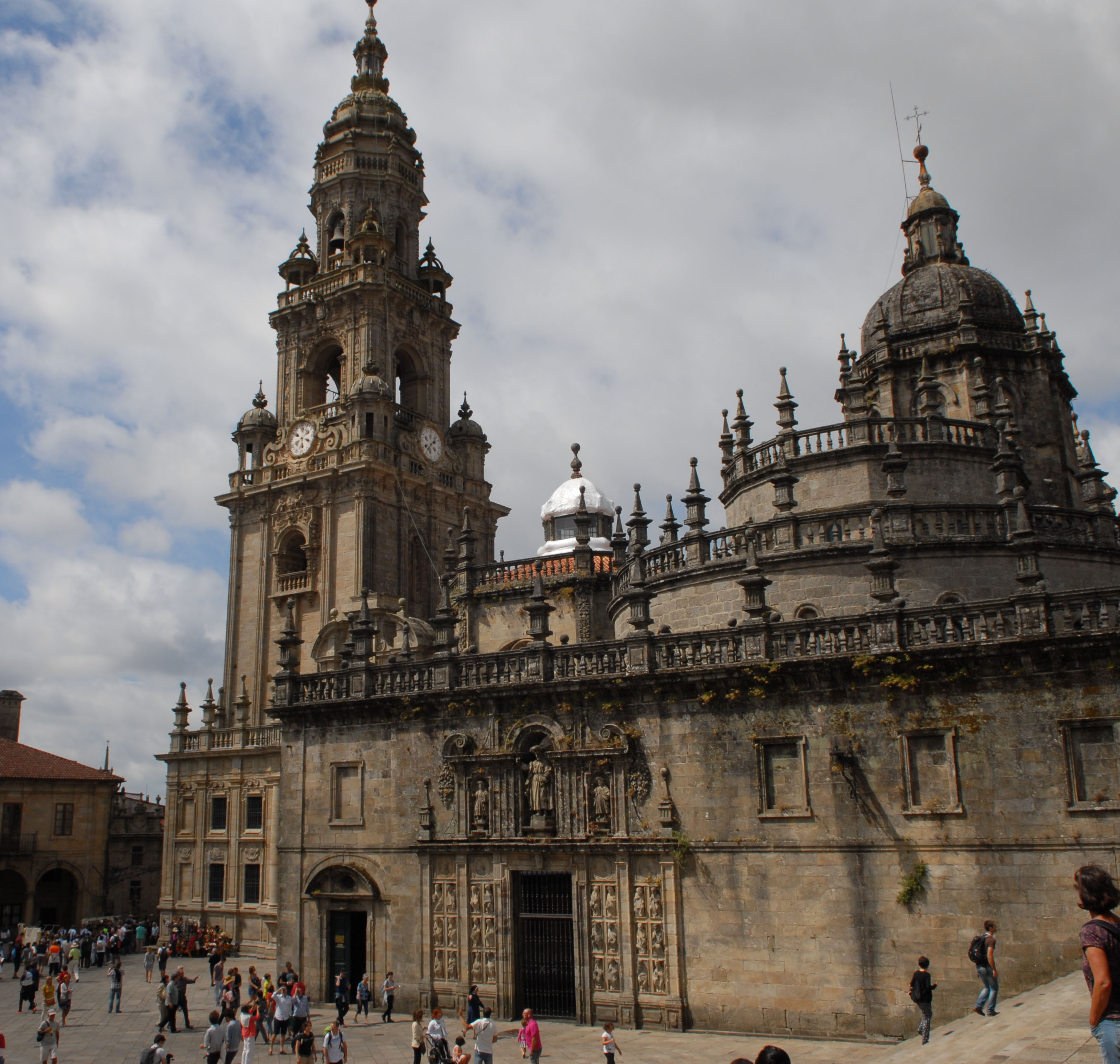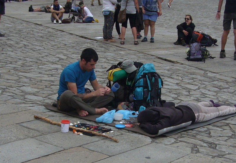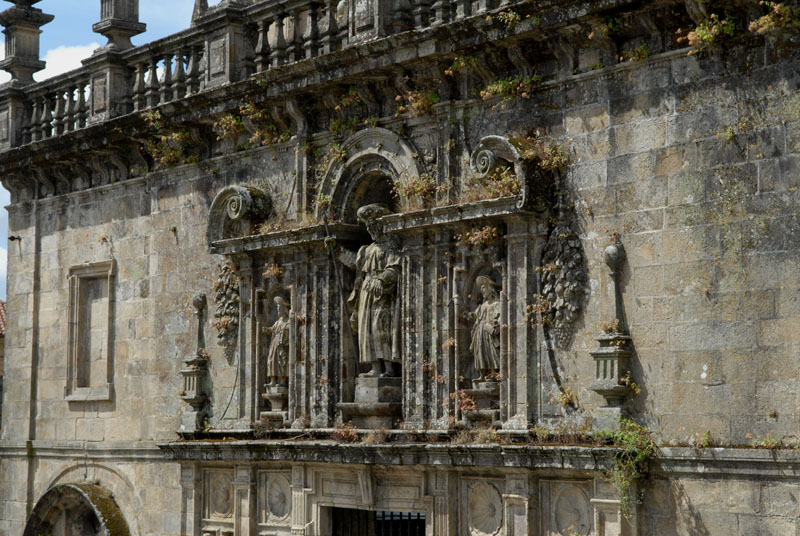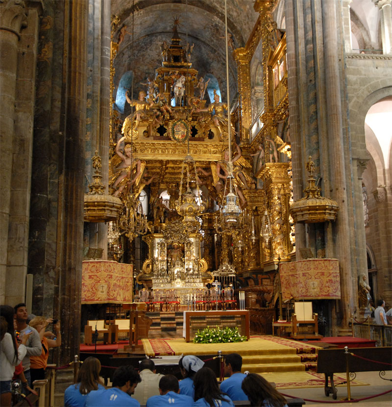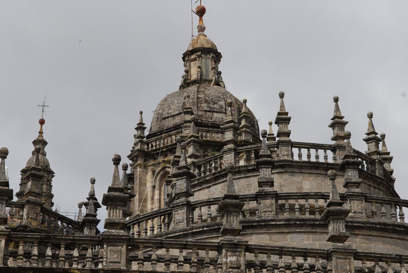 Santiago ist, wie erwartet, voll mit Pilgern, die mit unterschiedlichem Erscheinungsbild und Erschöpfungsgrad die Kathedrale erreichen. Um die 200.000 Wanderer kommen hier jährlich an…das macht täglich immerhin fast 600 Pilger. Nach Rom und Jerusalem ist Santiago einer der wichtigsten Wallfahrtsorte. Dementsprechend reich ausgeschmückt ist die Kathedrale in der die Gebeine vom Apostel Jakobi lagern sollen.