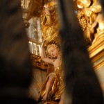 Immer wieder erstaunlich: Der Kontrast zwischen den prunkvollen Altären und dem einfachen Pilgerleben – selbst heutzutage. Wahrscheinlich bin ich mit der falschen Konfession aufgewachsen, um das zu verstehen…
