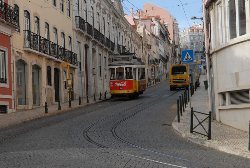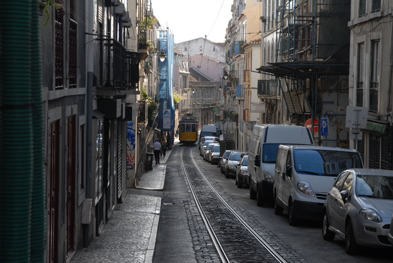 Am Nachmittag machen wir uns dann ins Bairro Alto auf. Dieses Viertel von Lisboa liegt der Marina am nächsten und ist somit gut zu Fuß zu erreichen. Im Viertel selber kann man sowieso nicht gut mit dem Fahrrad fahren, denn es zeichnet sich durch schmale Gassen mit extremen Steigungen aus. Außerdem fährt hier die berühmte Linie 28 der Lissaboner Straßenbahn, die um die 100 Jahre alt ist. Eine Fahrt mit dieser „wilden Maus“, die ein echtes Erlebnis sein soll, sparen wir uns noch auf bis die Geburtstags-Gäste da sind.