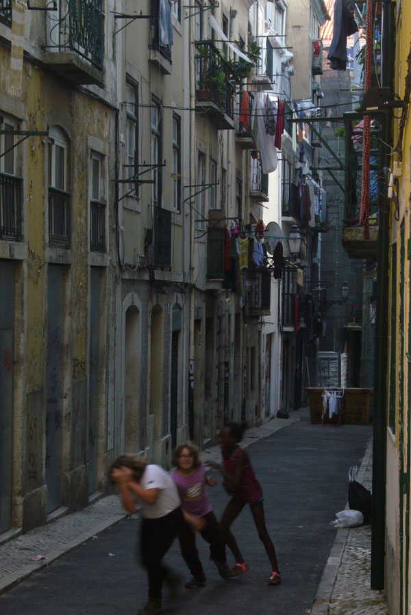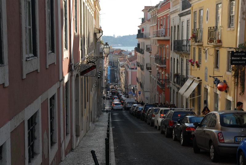 Das bairro Alto hat das große Erdbeben von 1755 fast unbeschädigt überstanden, so dass noch eine alte Baustruktur vorhanden ist. Anders als im zerstörten Viertel Baixa in dem man nach dem Beben alle Straßen rechtwinklig angelegt hat. Hier ist alles gut in Schuss und iswir befinden uns in dem Restaurant-, Bar- und Ausgehviertel von Lissabon. Überwiegend junge, recht wohlhabende Portugiesen wohnen hier, da Mieten und Kaufen teuer ist.