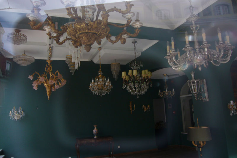 Erst zum Rand hin, fällt das Niveau etwas ab und in einem Kronleuchter-Laden finden wir etwas, was wir für ein Einschussloch