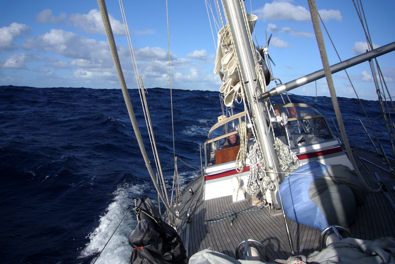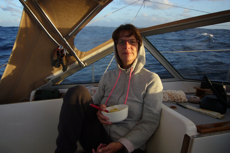 Dieses Rollen in der Dünung ist nicht meins, aber mir geht es prima, wenn ich oben an Deck sitze und auf‘s Wasser schaue oder schlafe, dann wird mir nicht komisch, alles gut. Nach ungefähr 24 Stunden Eingewöhnung, kann ich auch wieder unter Deck sein, wieder lesen, mich an- und ausziehen, kann wieder abwaschen und bin im Prinzip einsatzfähig.