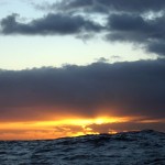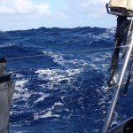 Unsere Fahrt beginnt also bei schwachen Winden sehr ruhig. Das ändert sich nach ein paar Stunden, als wir aus der Abdeckung von Cabo Sao Vicente segeln und uns die, erwartete, Dünung von der Seite trifft. Sie ist mit gut 2 Metern schwächer als gedacht, reicht aber allemal für eine kräftige Partie des lustigen Schaukelspiels: 15 Grad nach rechts, 15 Grad nach links… und so soll es dann auch die gesamte Überfahrt bleiben. Zeitweise ist es etwas ruhiger, dann wieder etwas schlimmer.