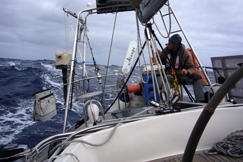 Und als weitere Premiere auf unserer Reise überlassen wir unserer Wind-Herta das Ruder. Bei dieser Dame handelt es sich um unsere Windsteuer-Anlage, einer Pacific Plus. Diese hatten wir natürlich schon ausprobiert, aber auf der Ostsee sind die Schläge einfach zu kurz, so dass Herta bislang noch nicht zeigen konnte, was in ihr steckt. Auf der Biskaya waren wir noch so sehr mit anderen Dingen beschäftigt, dass wir nur den elektrischen Autopiloten verwendet haben. Dieser macht einen prima Job und ist sehr leise, aber wir haben nicht mehr genug Strom für das Teil. Denn bei mittlerweile 13 Stunden Dunkelheit können die Solarpanele nicht lange genug arbeiten und der Windgenerator alleine schafft es nachts meistens nicht alle Systeme zu versorgen. Aber, um es kurz zu machen, diese Fahrt hat Wind-Herta bravourös gemeistert.