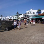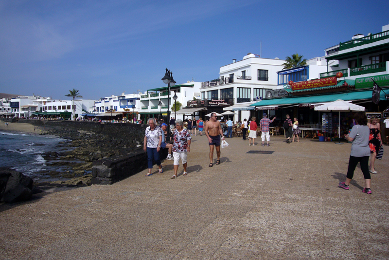 Der Ort Playa Blanca erstreckt sich auf ca. 6 km die Küste entlang und unsere Marina liegt nahezu in der Mitte. Ein schöner, gepflasterter Fußweg, den man auch mit dem Fahrrad nutzen kann (aber nur zum Teil darf), führt direkt am Meer entlang. Es reiht sich ein Restaurant, Imbissbude, Souvenirshop, Klamotten-, Schuh-, oder Sonstwas-Laden an den anderen. Somit benötigt man beim ersten Flanieren auf dieser Promenade doppelt so lange für die Strecke, wie normal. Beim zweiten Mal geht es schon fixer, weil man schnell lernt, dass man aus diesen Geschäften nichts, wirklich nichts benötigt.
