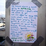 Sie berichten mir, dass sie auf einem großen Schiff Unterschlupf gefunden haben und heute Abend kochen wollen und dazu „alle“ Hitchhiker und ein paar Segler einladen, damit man sich besser kennen lernt.