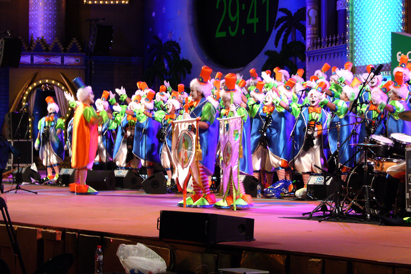 Bei den Murgas „schlechten Musikkapellen“ handelt es sich um Gesangsgruppen, die in grellbunten, lustigen Clown-Kostümen unter der Zuhilfenahme von Tröten lautstark Karnevalslieder zum Besten geben.