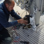 Donnerstag kam der Techniker dann wie versprochen (mit nur einer Stunde Verspätung) an Bord und brachte die reparierte Masteinheit wieder. Flink wie ein Wiesel bin ich auf den Mast gestiegen, habe das Teil wieder an seinen angestammten Platz gesetzt und siehe da…..alles funktioniert wieder .