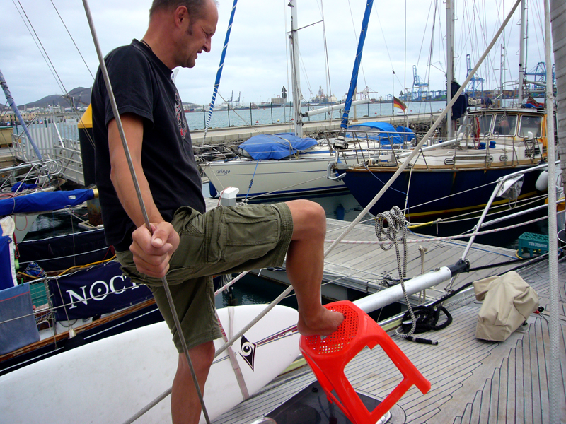 Unsere an-Bord-komm-Einstiegshilfe ist unter der Last eines Crewmitglieds zusammen gebrochen.