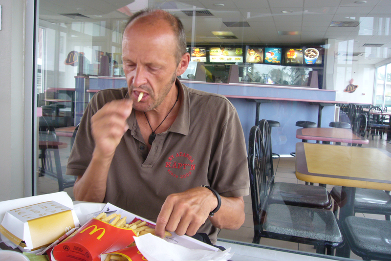 Fünf Minuten später setzten sie uns direkt vor der Tür ab und noch fünf weitere Minuten hat Achim das erste BigMac Menü seit Monaten vor der Nase.