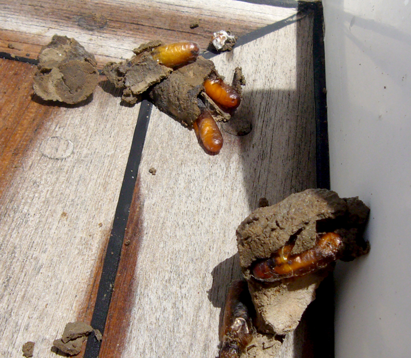 Beim hissen des Großsegels fällt ins ein Kokon aufs Deck. Die Wespe, der wir den Zugang zur Cockpit-Klappe verwehrt haben, hat sich ein neues Heim für ihre Kinder gesucht. Zehn Larven sitzen in ihrem Mangroven-Schlamm-Hülle und scheinen kurz vor dem Schlüpfen gestanden zu haben.