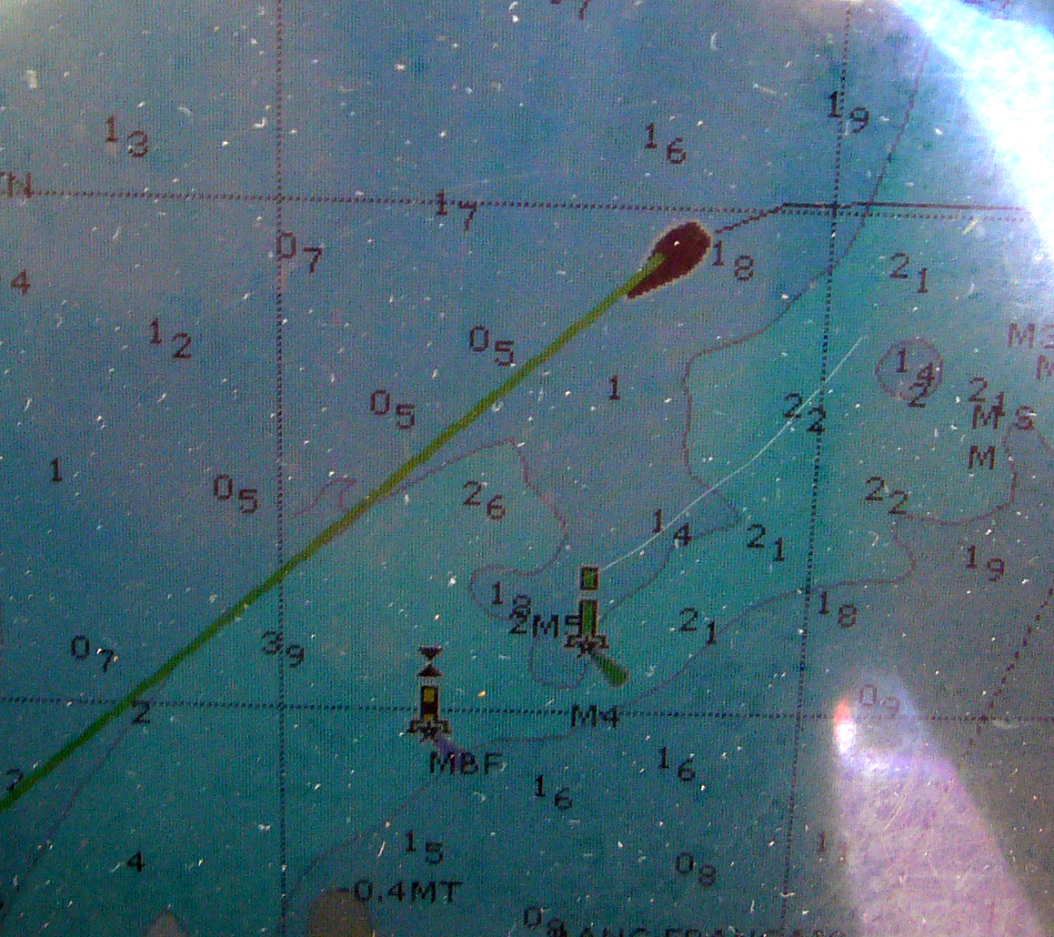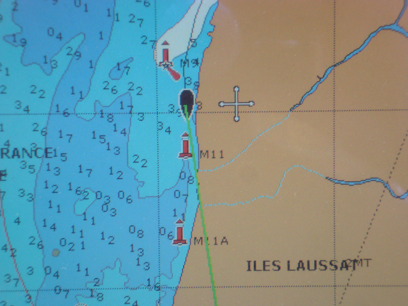 Da wir mit dem Morgen-Niedrigwasser dort ankommen wollen, fällt der größte Teil der Strecke in die Nacht.