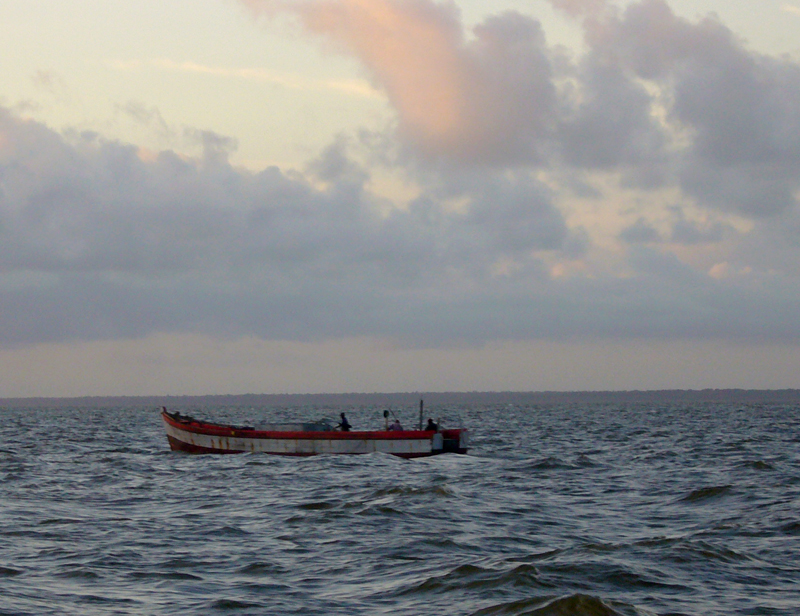 Der Mond ist untergegangen und mit ihm jede Chance so einen schlafenden Fischer rechtzeitig zu entdecken. Selbst auf dem Vorschiff stehend, ist das ein unmögliches Unterfangen.