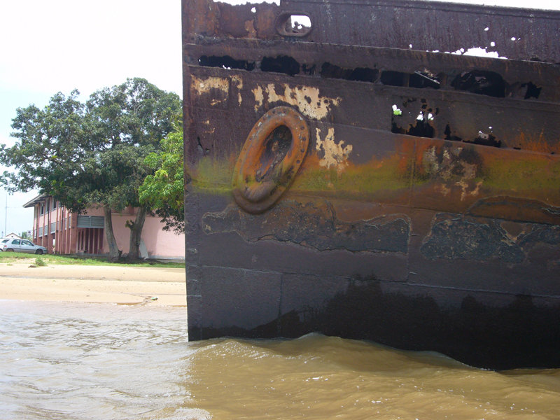 Es ist die ‚Edith Cavell‘, ein Dampfschiff, 1898 in den Dienst gestellt, um Saint-Laurent-du-Maroni mit Gütern aller Art zu versorgen.