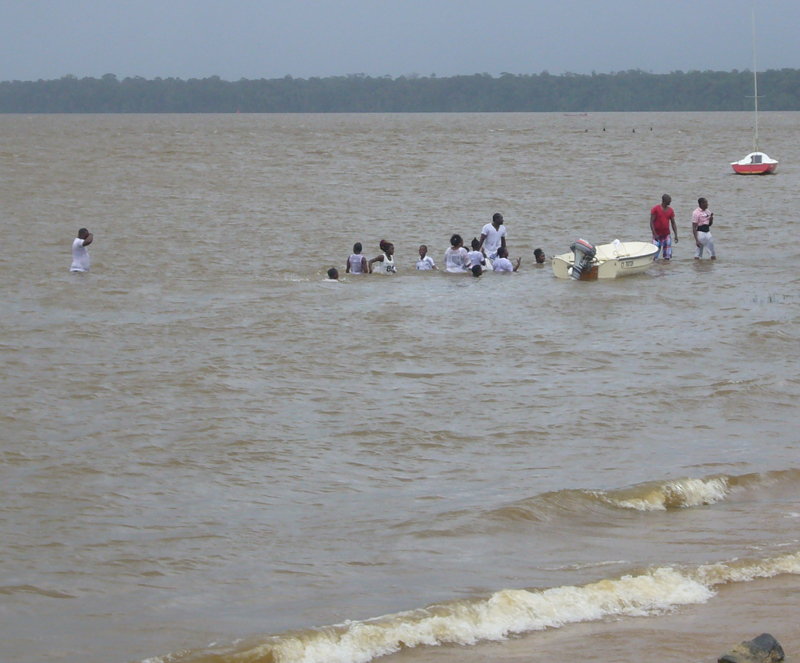 Oder gestern fand eine Art Taufe statt. Eine kleine Gruppe, weiß gekleideter junger Leute, ging in den Fluss und wurde dort gesegnet oder getauft.